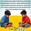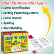 - Supports letter identification, letter sounds, spelling, vocabulary, and phonics.