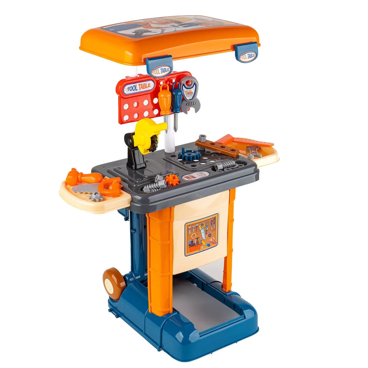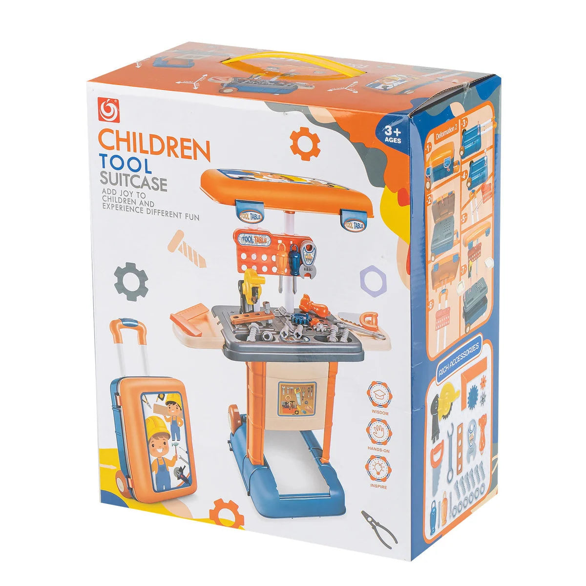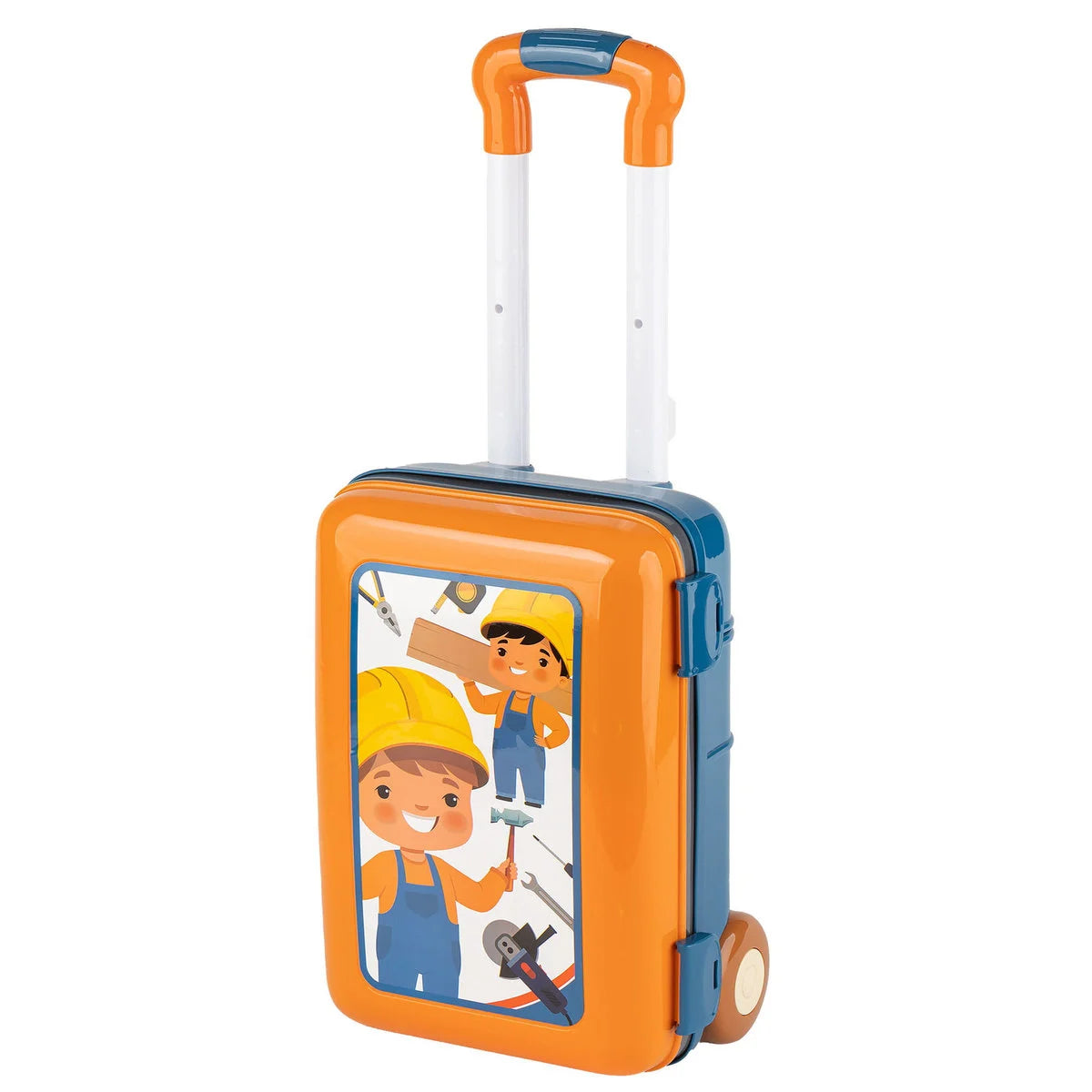 ive little builders a fun hands-on experience with this Kids Tool Workshop Suitcase Set 3-in-1, a portable pretend-play tool station that transforms from a suitcase into a workbench/table. The Empik listing highlights a 3-in-1 workshop in a suitcase, with wheels and a handle for easy carrying, plus two setup modes that create work stations with adjustable height.