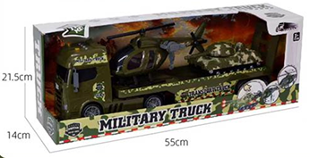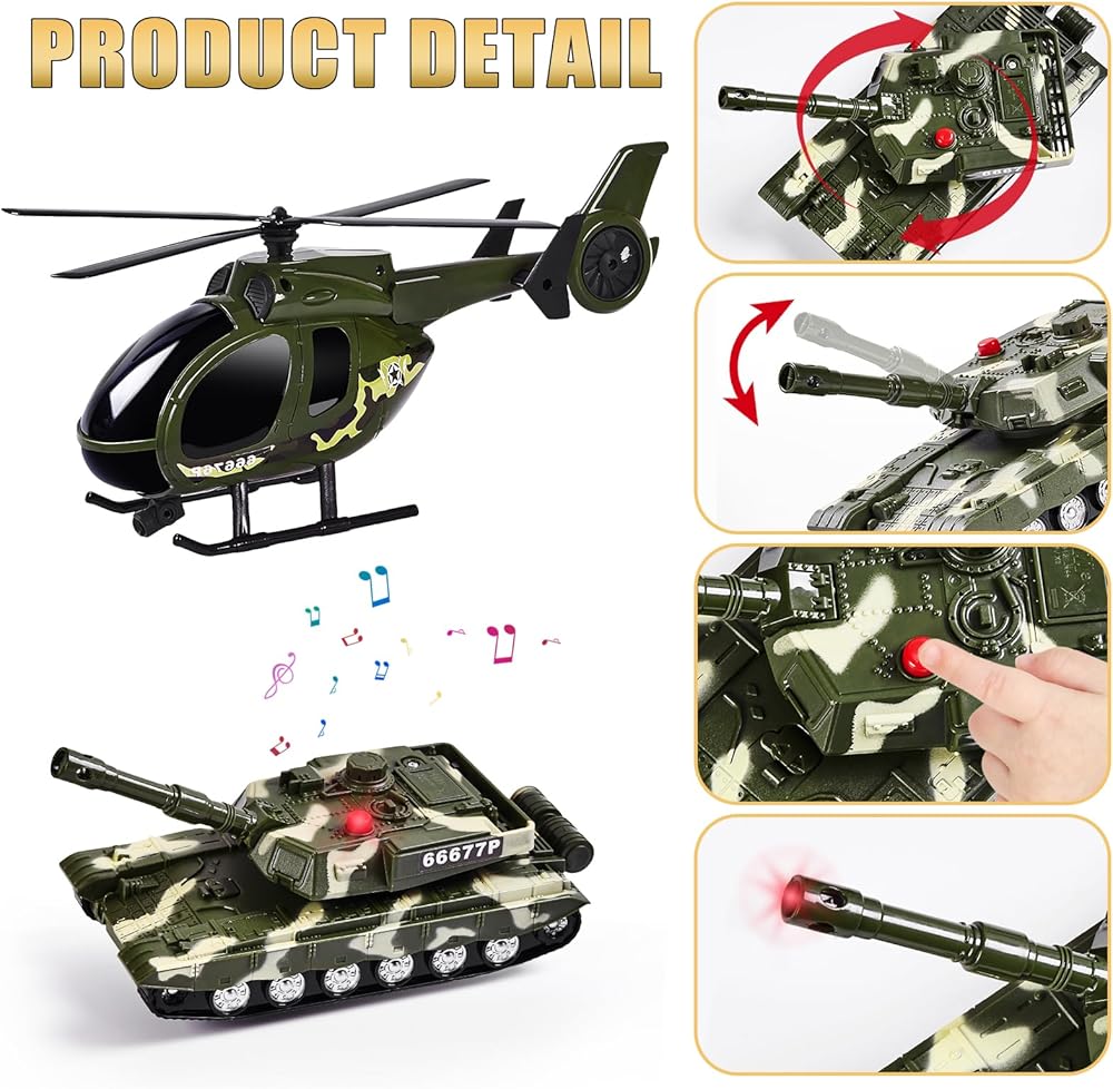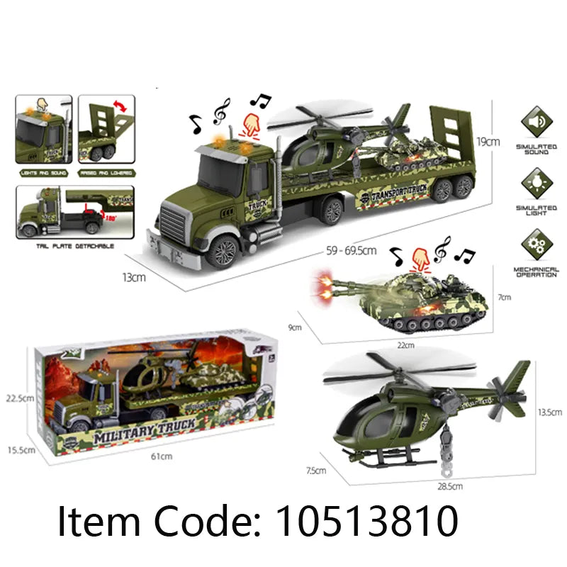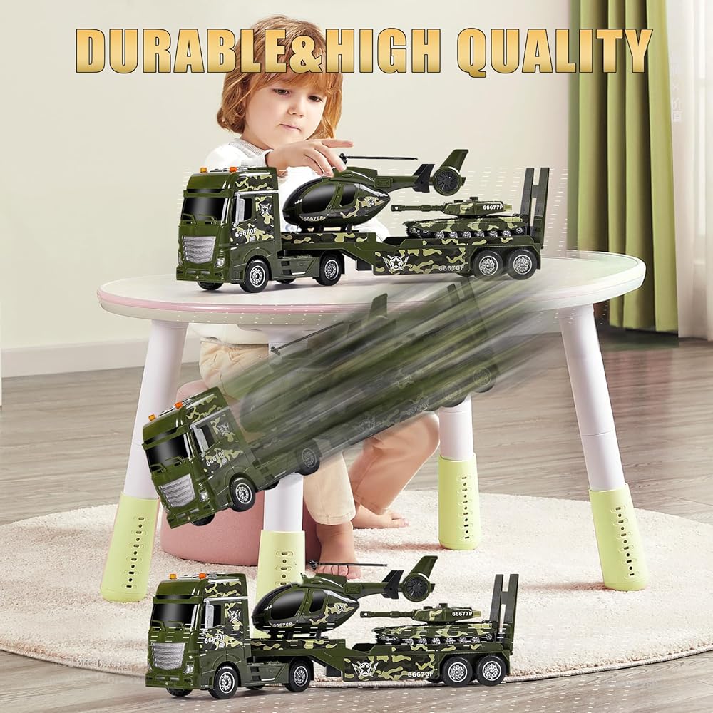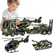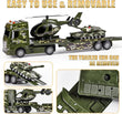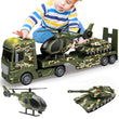 Military Transport Truck Toy Set with Tank & Helicopter – Light & Sound Army Vehicle Carrier for Kids