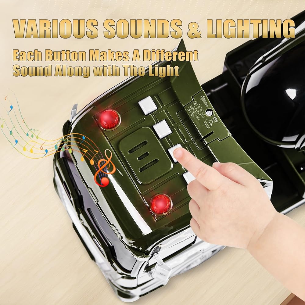 Featuring realistic lights and sound effects, children can enjoy immersive military missions while improving creativity and coordination skills. The detachable trailer allows loading and unloading vehicles, adding realistic play scenarios.